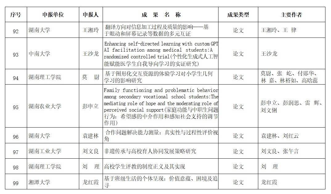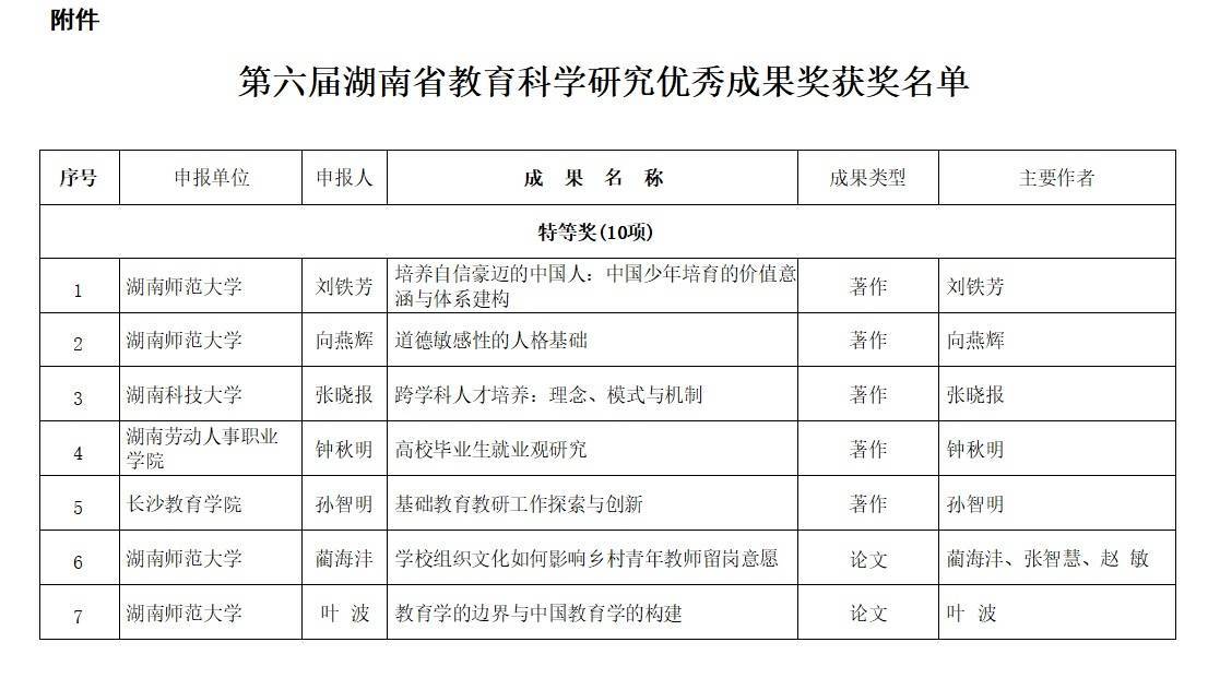 日前股票配资代理,湖南省教育厅湘教通【2025】223号文,公布第六届湖南省教育科学研究优秀成果奖获奖名单。